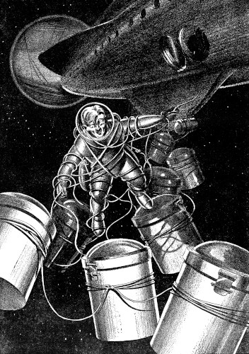 "That's what I'm trying to find out," he said strangely. He finished tying a loop around one of the jars; pushed himself free and toward the airlock.