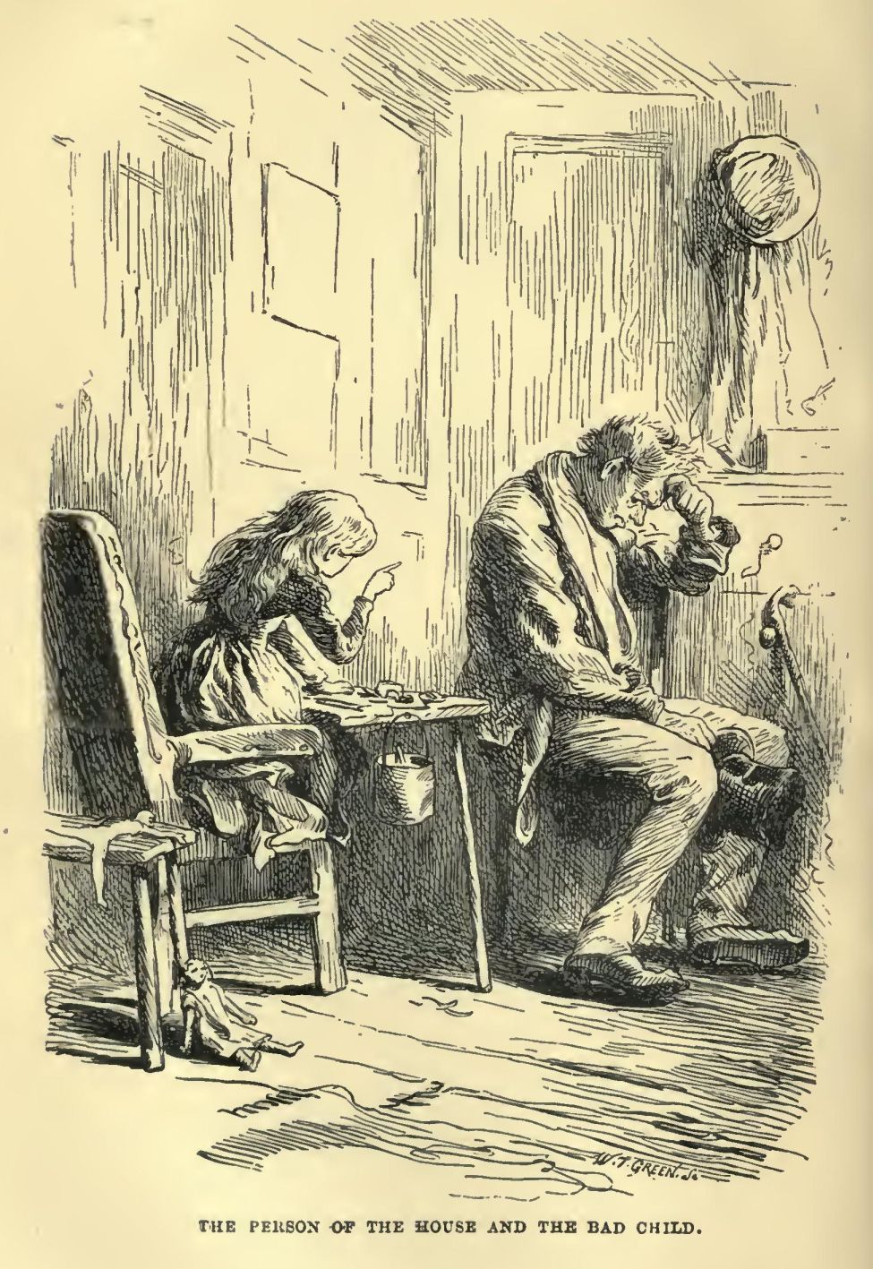 ‘There, there, there!’ said Miss Wren. ‘For goodness’ sake, stop, Giant, or I shall be swallowed up alive, before I know it. And to this minute you haven’t said what you’ve come for.’