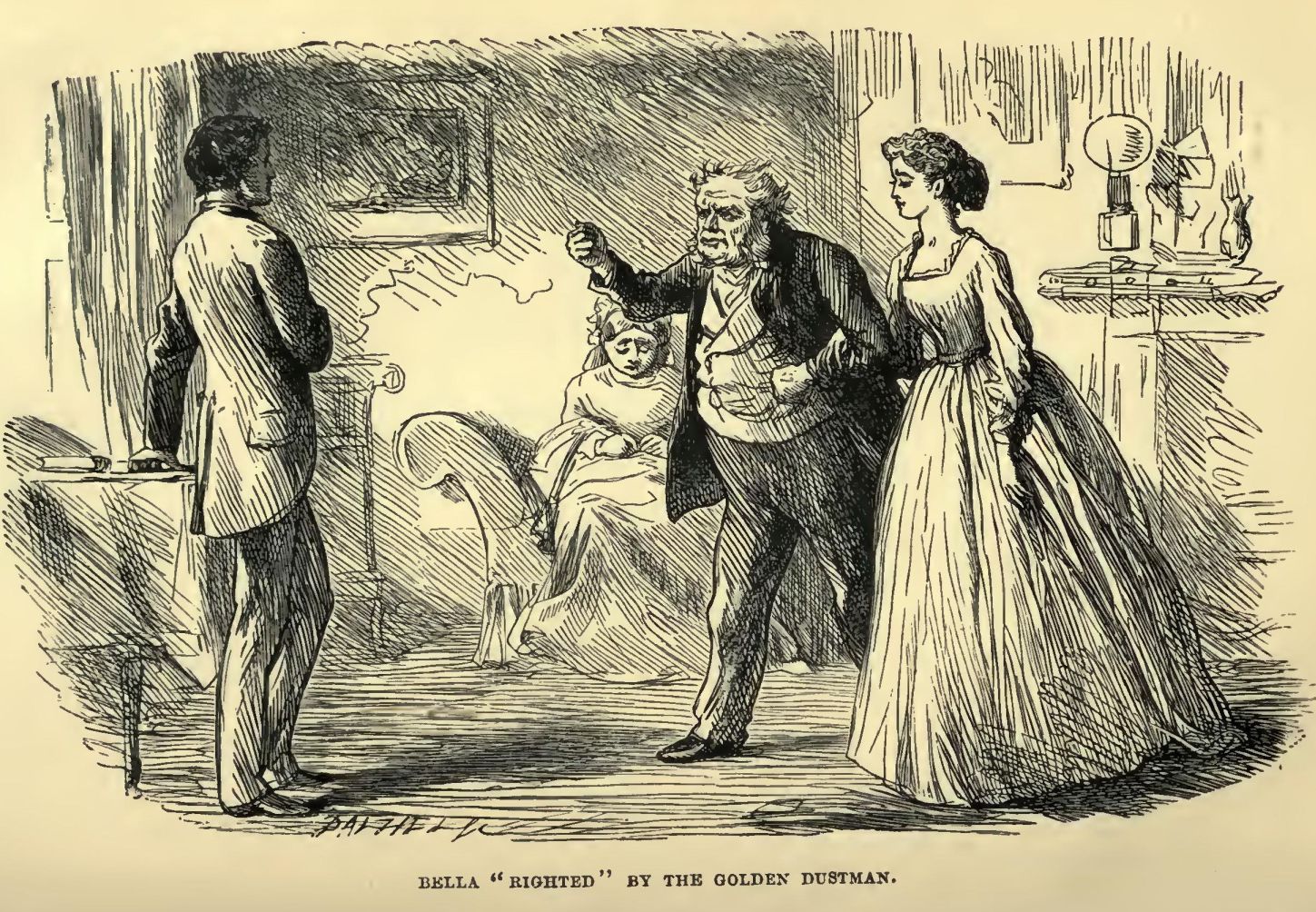 That same afternoon, Eugene lying on his couch in his own room upstairs, Lightwood came to chat with him, while Bella took his wife out for a ride. ‘Nothing short of force will make her go,’ Eugene had said; so, Bella had playfully forced her.
