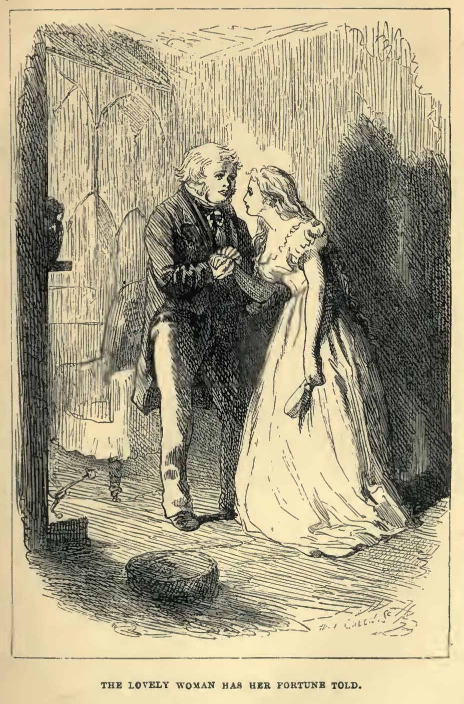 The fair enslaver having fallen into one of her gentle sleeps during the last exposition, nobody likes to wake her. Fortunately, she comes awake of herself, and puts the question to the Wandering Chairman. The Wanderer can only speak of the case as if it were his own. If such a young woman as the young woman described, had saved his own life, he would have been very much obliged to her, wouldn’t have married her, and would have got her a berth in an Electric Telegraph Office, where young women answer very well.