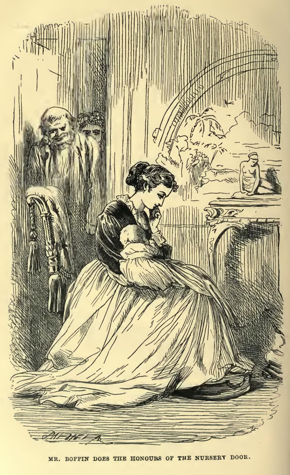 Mrs Veneering welcomes her sweet Mr Twemlow. Mr Veneering welcomes his dear Twemlow. Mrs Veneering does not expect that Mr Twemlow can in nature care much for such insipid things as babies, but so old a friend must please to look at baby. ‘Ah! You will know the friend of your family better, Tootleums,’ says Mr Veneering, nodding emotionally at that new article, ‘when you begin to take notice.’ He then begs to make his dear Twemlow known to his two friends, Mr Boots and Mr Brewer—and clearly has no distinct idea which is which.